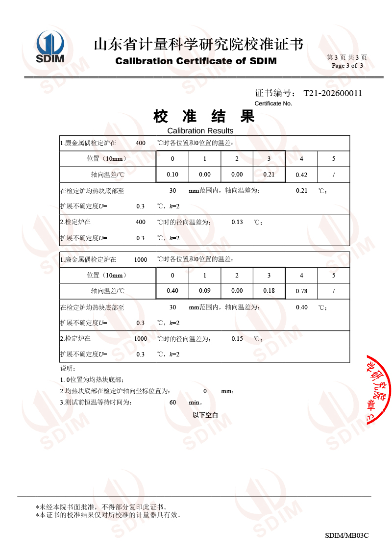 廉金屬熱電偶檢定爐-校準(zhǔn)證書