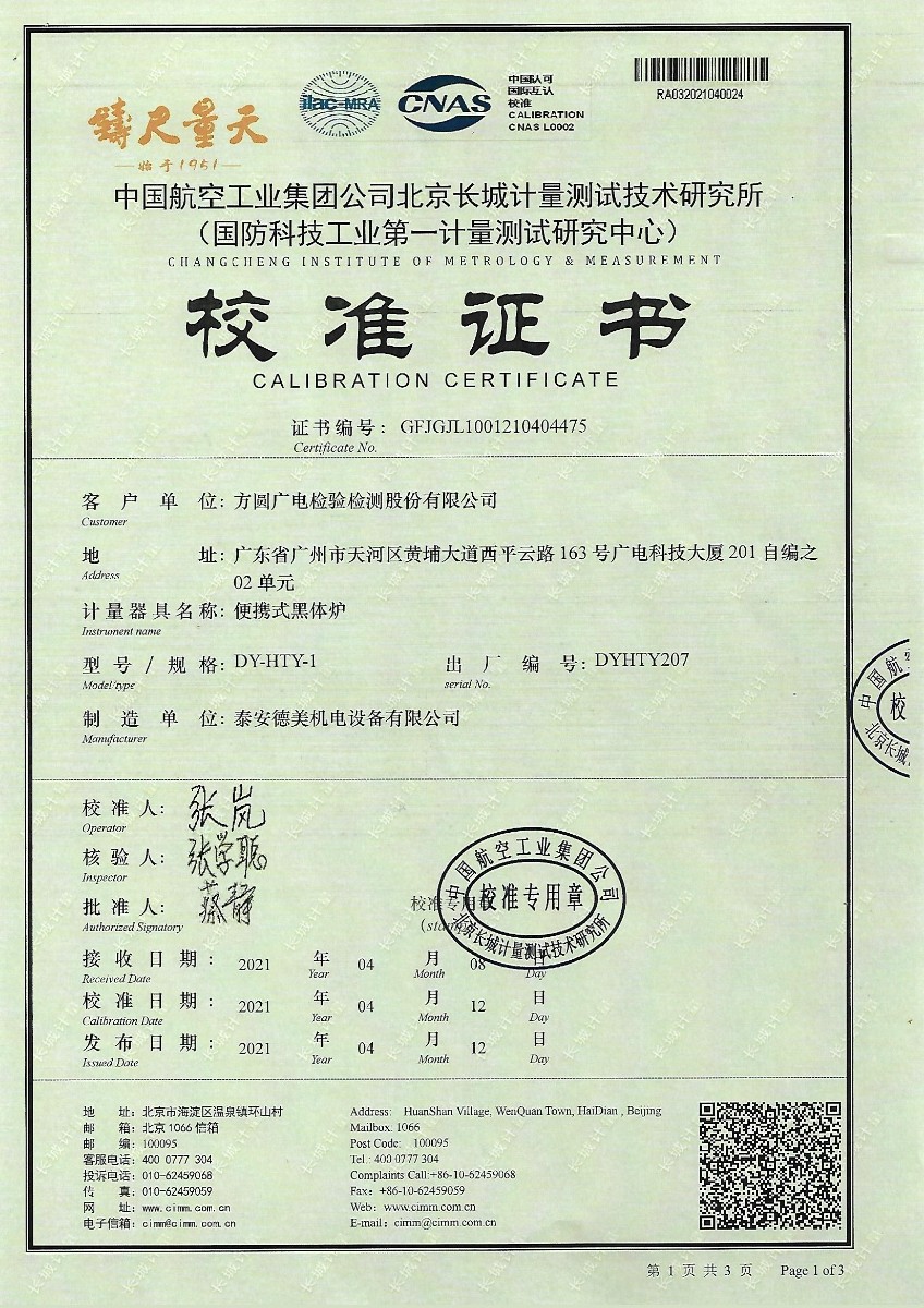 | 上一條:上海紅力檢測技術(shù)有限公司-耳溫計黑體空腔 | 下一條:冷鏡式露點(diǎn)儀校準(zhǔn)證書 |