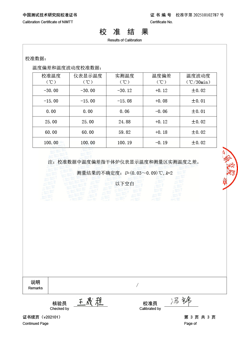 便攜式干體爐(-30-150℃)校準(zhǔn)證書(shū) 2025-10-21 本文被閱讀 113 次