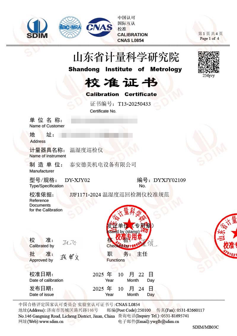 溫濕度巡檢儀校準(zhǔn)證書 2025-10-30 本文被閱讀 36 次