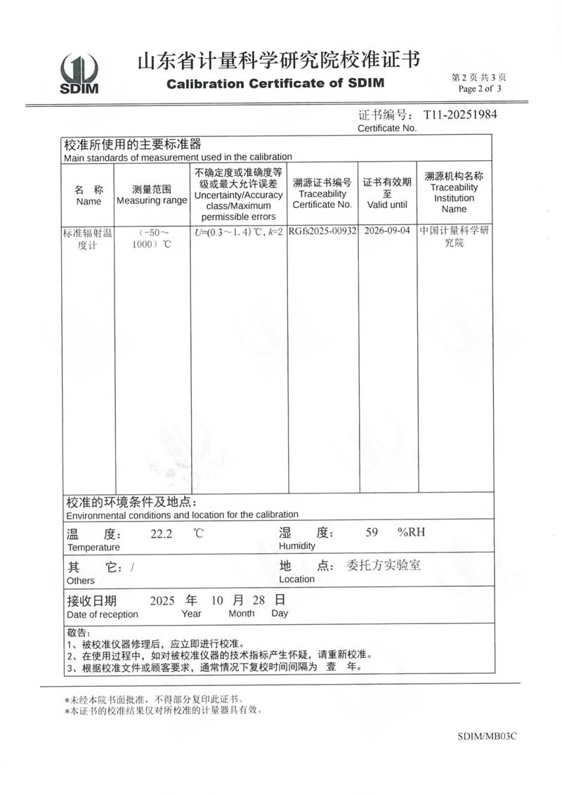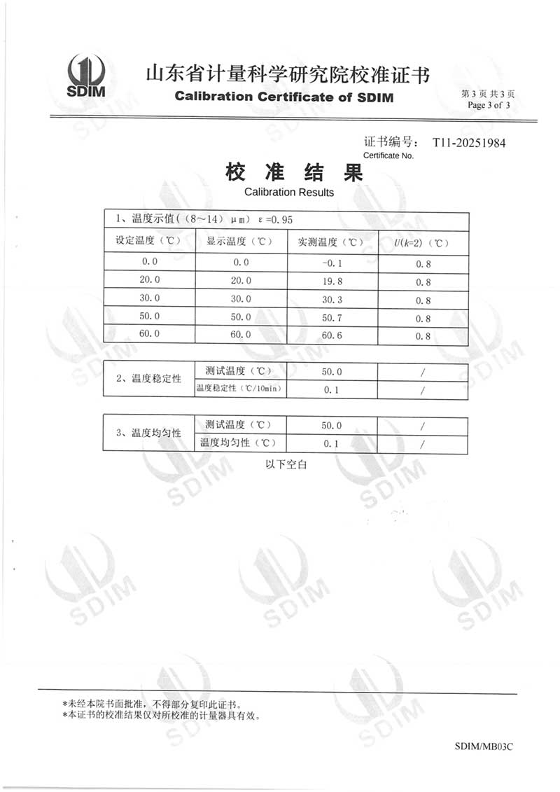 黑體輻射源(0-60°C)校準證書 2025-11-5 本文被閱讀 137 次