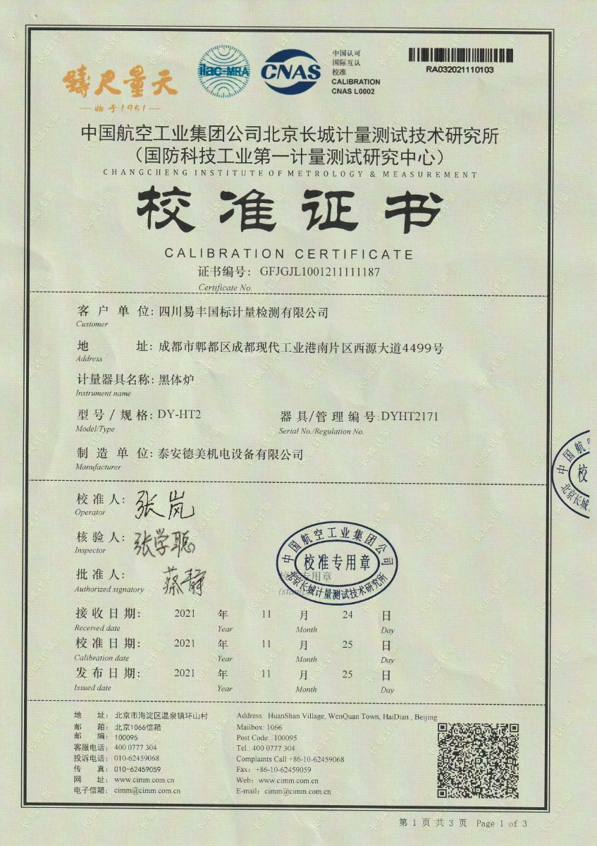四川易豐國際計量檢測有限公司-黑體爐 2021-12-3 本文被閱讀 14251 次