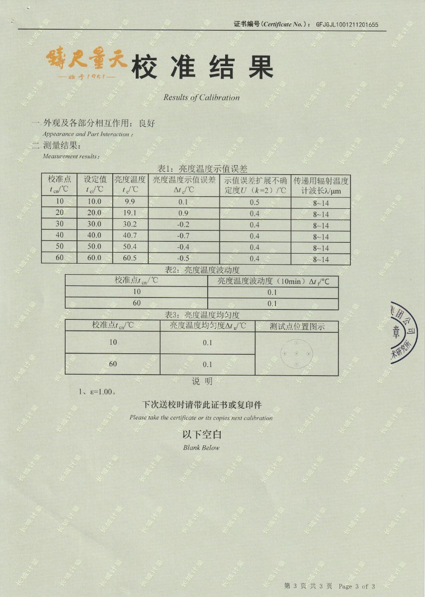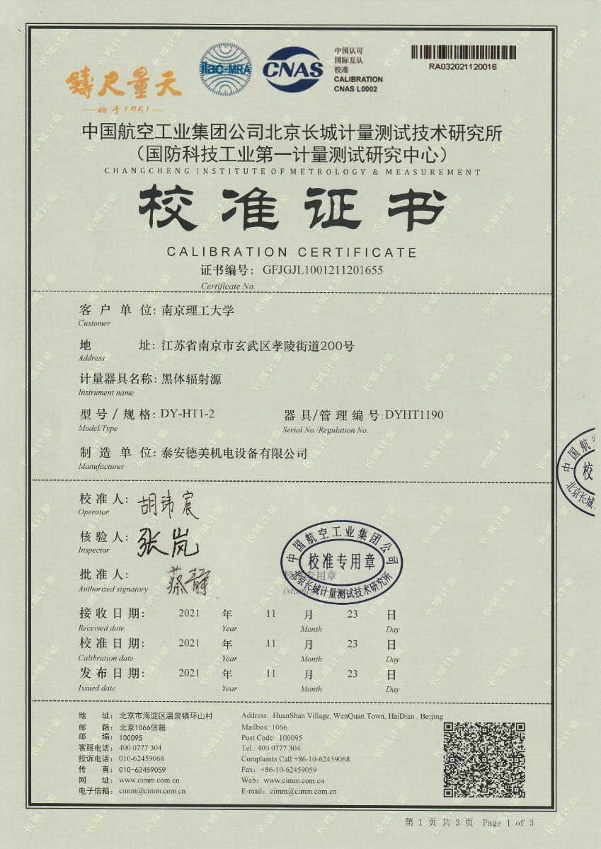 南京理工大學-黑體輻射源校準證書10-60℃ 2021-12-4 本文被閱讀 13992 次