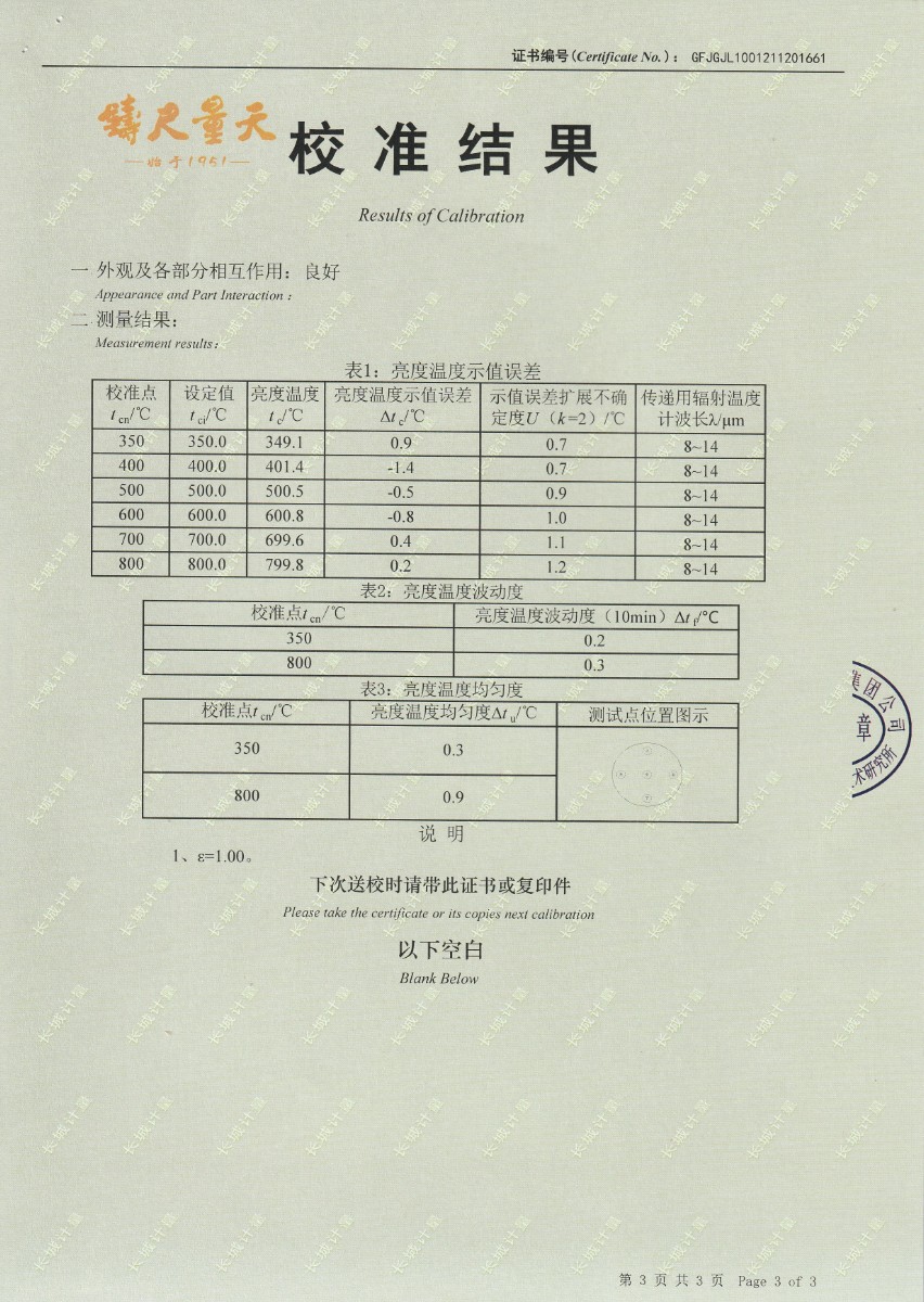 | 上一條:南京理工大學(xué)-黑體輻射源校準(zhǔn)證書(shū)300℃ | 下一條:溫濕度檢定箱(-5~65℃)校準(zhǔn)證書(shū) |