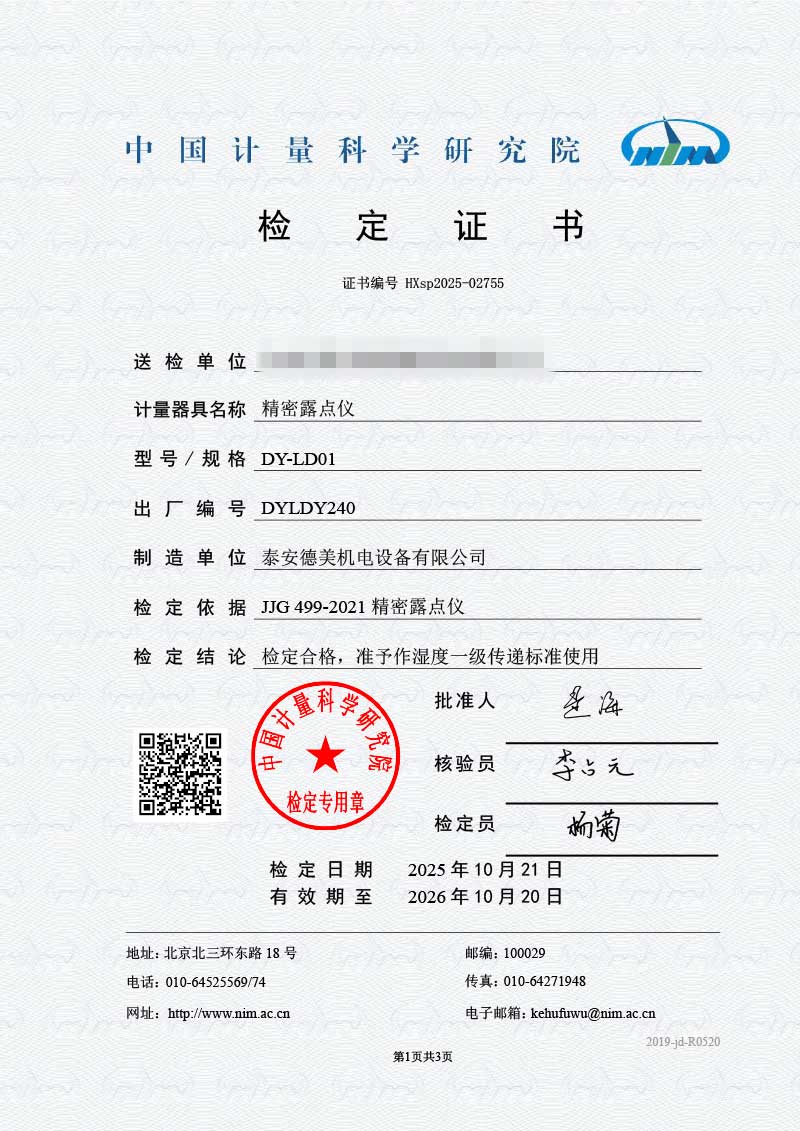 | 上一條:中溫腔式黑體輻射源(50-700℃)校準(zhǔn)證書(shū) | 下一條:便攜式溫濕度檢定箱(-10-60℃)校準(zhǔn)證書(shū) |