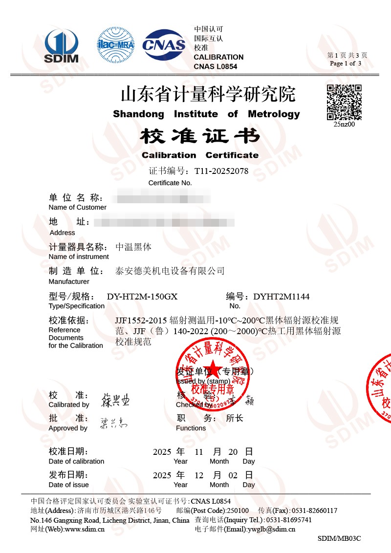 中溫黑體校準(zhǔn)證書(shū) 2025-12-4 本文被閱讀 515 次