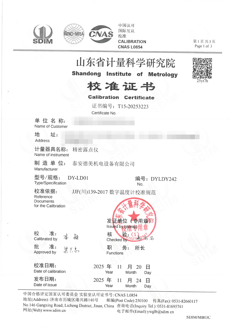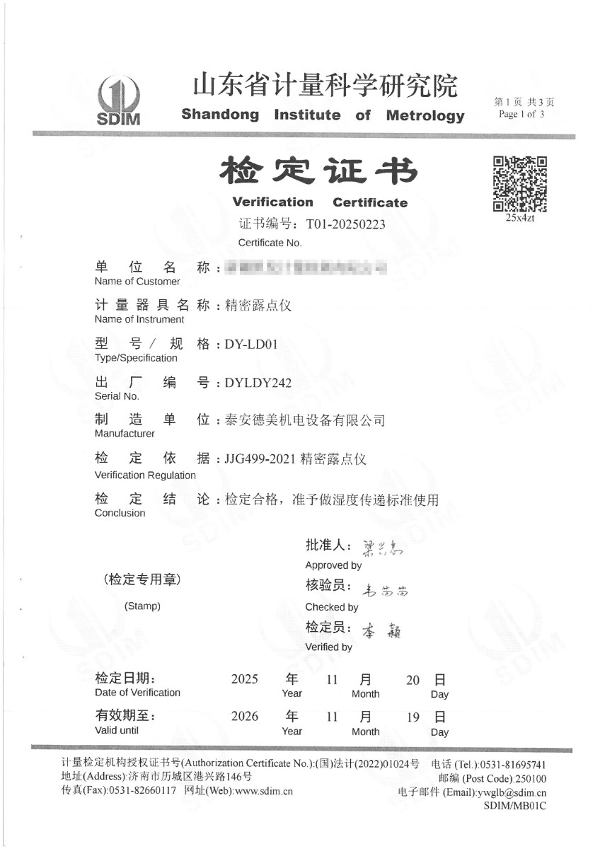露點(diǎn)儀檢定、校準(zhǔn)證書 2025-12-4 本文被閱讀 781 次