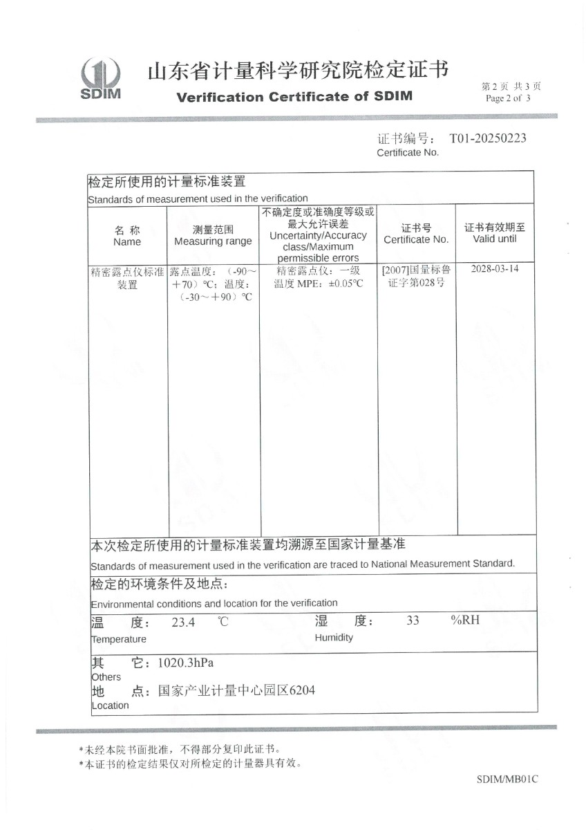 露點(diǎn)儀檢定、校準(zhǔn)證書