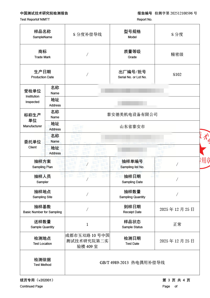 補(bǔ)償導(dǎo)線檢測、檢定、校準(zhǔn)報(bào)告