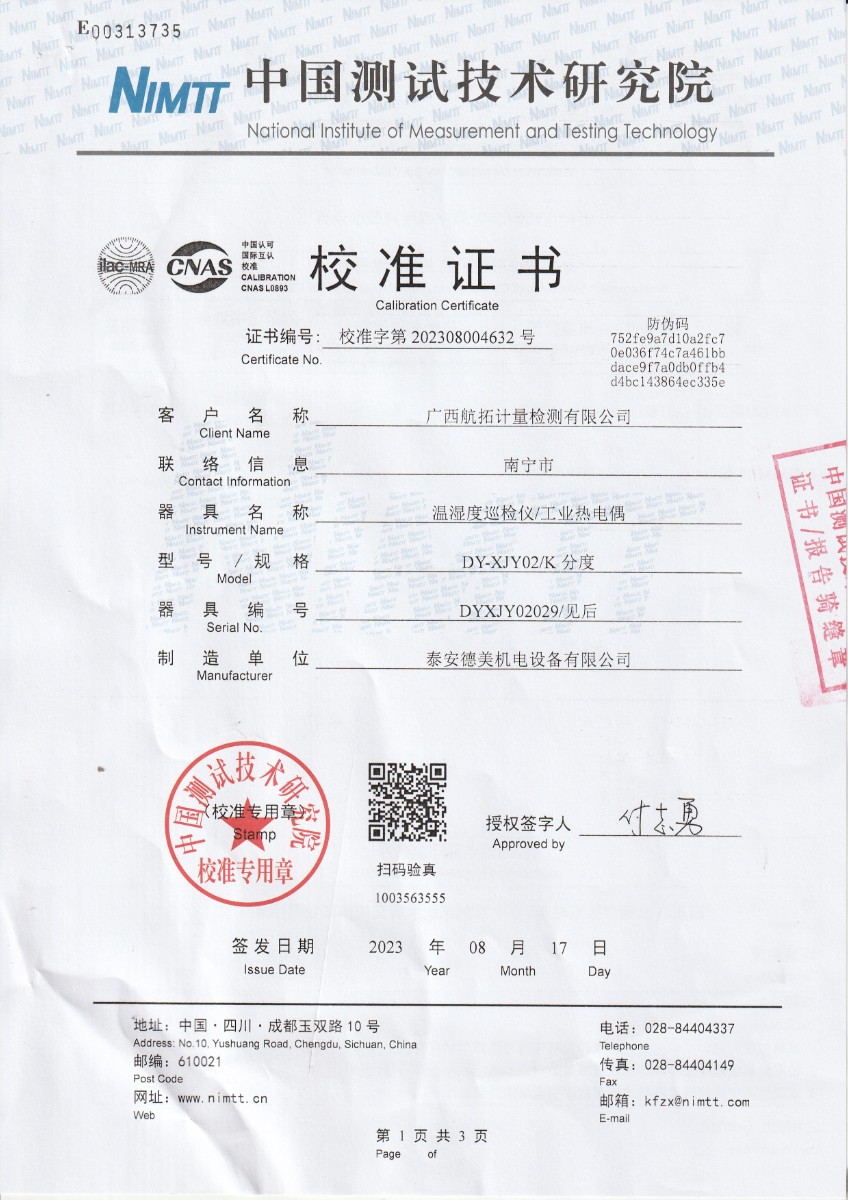 廣西航拓計量檢測有限公司-溫濕度巡檢儀、工業(yè)熱電偶 2023-8-23 本文被閱讀 11667 次