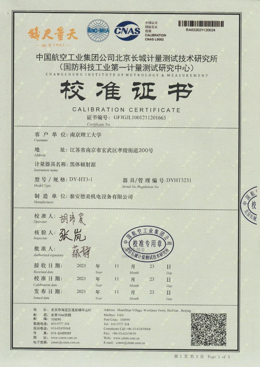 | 上一條:南京理工大學(xué)-黑體輻射源校準(zhǔn)證書350-800℃ | 下一條: DY-HT1D-100C超低溫黑體輻射源 |