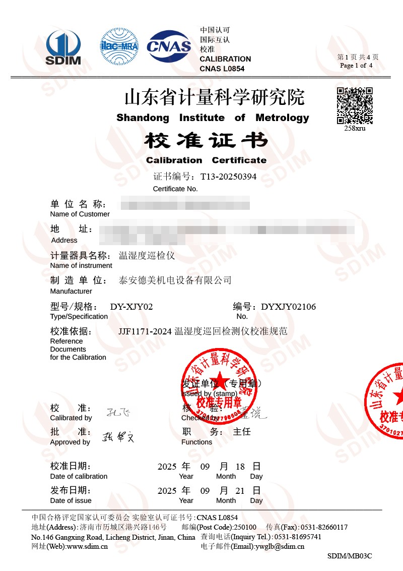 溫濕度巡檢儀校準(zhǔn)證書 2025-9-23 本文被閱讀 490 次