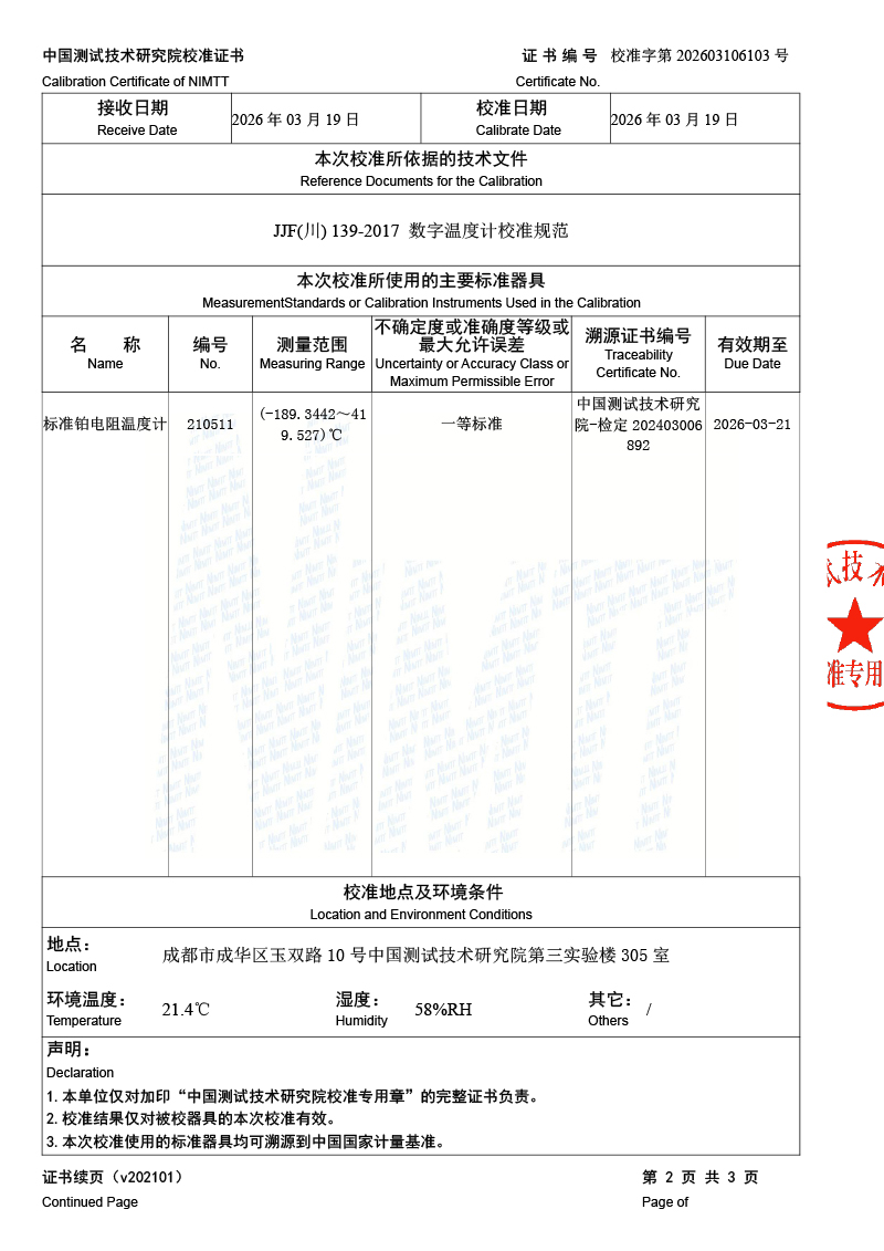 數(shù)字溫度計-校準證書 2026-3-20 本文被閱讀 174 次