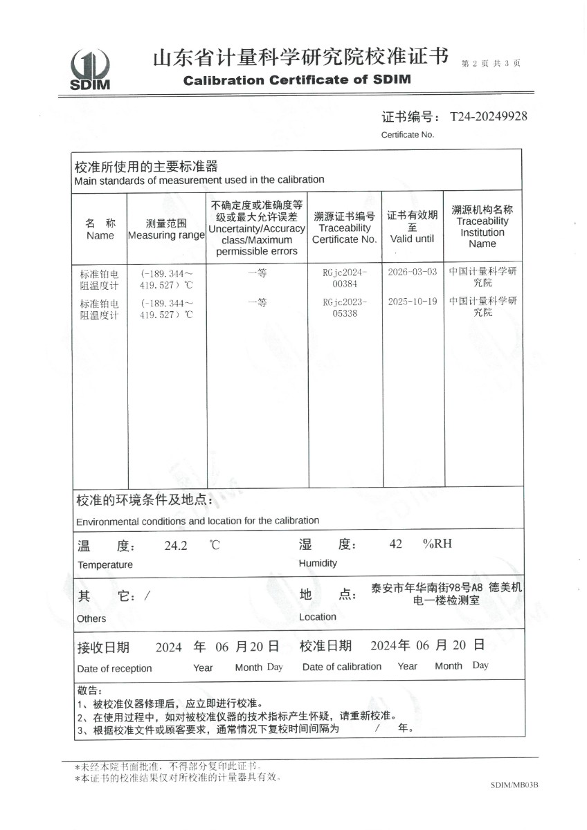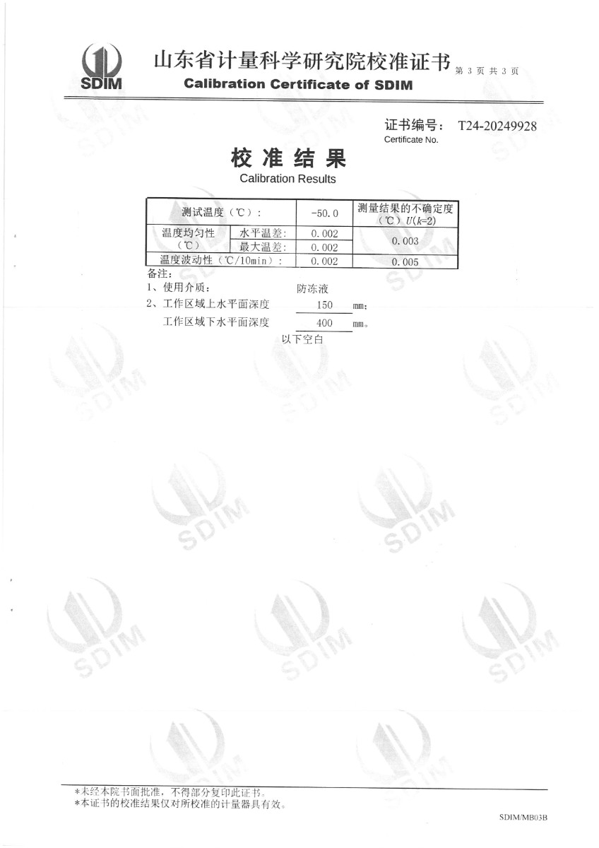 | 上一條:高精度恒溫油槽(90~300℃)校準(zhǔn)證書(shū) | 下一條:便攜式干體爐(-30-150℃)校準(zhǔn)證書(shū) |