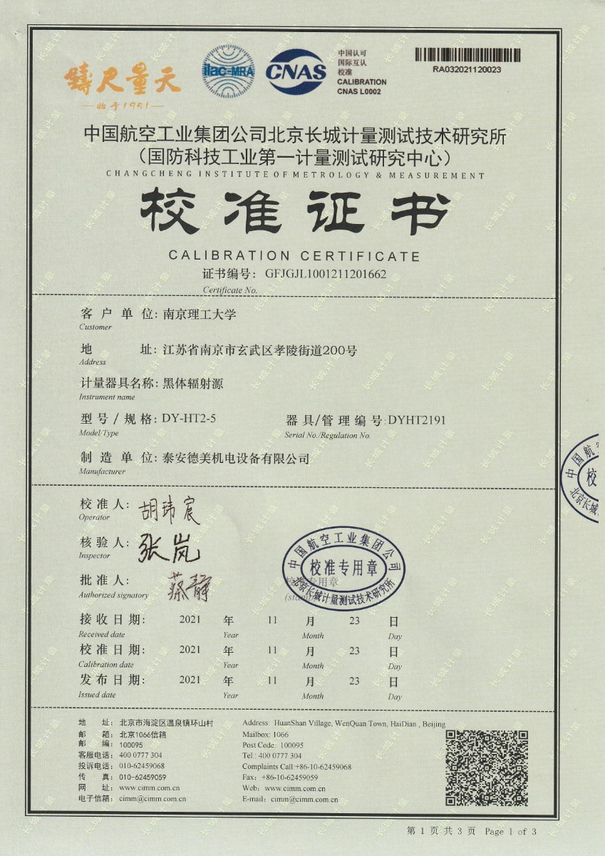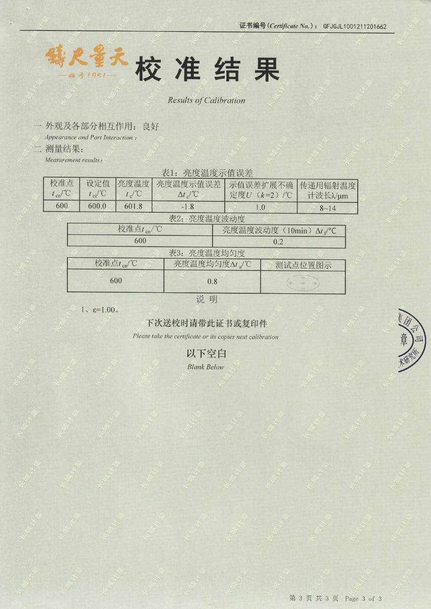 | 上一條:南京理工大學(xué)-黑體輻射源校準(zhǔn)證書(shū)600-1200℃ | 下一條:便攜式干體爐(-30-150℃)校準(zhǔn)證書(shū) |
